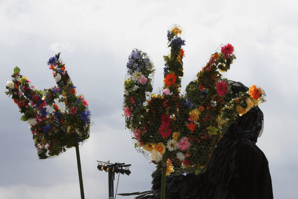 While the team were unable to fit his flower hands back into their sleeves, his head was stabilized on its shoulders securely enough to finish the parade. He made appearances in the albums of other photographers on the bridge, thankfully still equally appreciated with the other giants.
