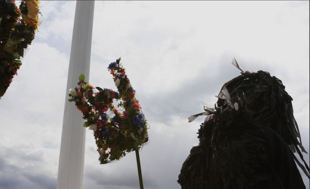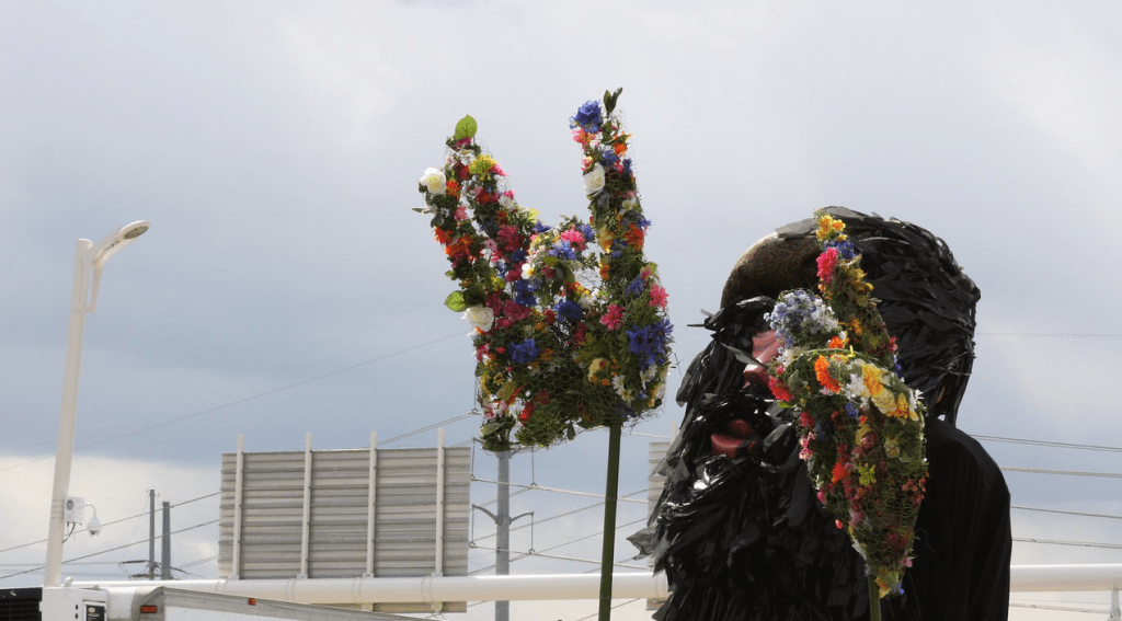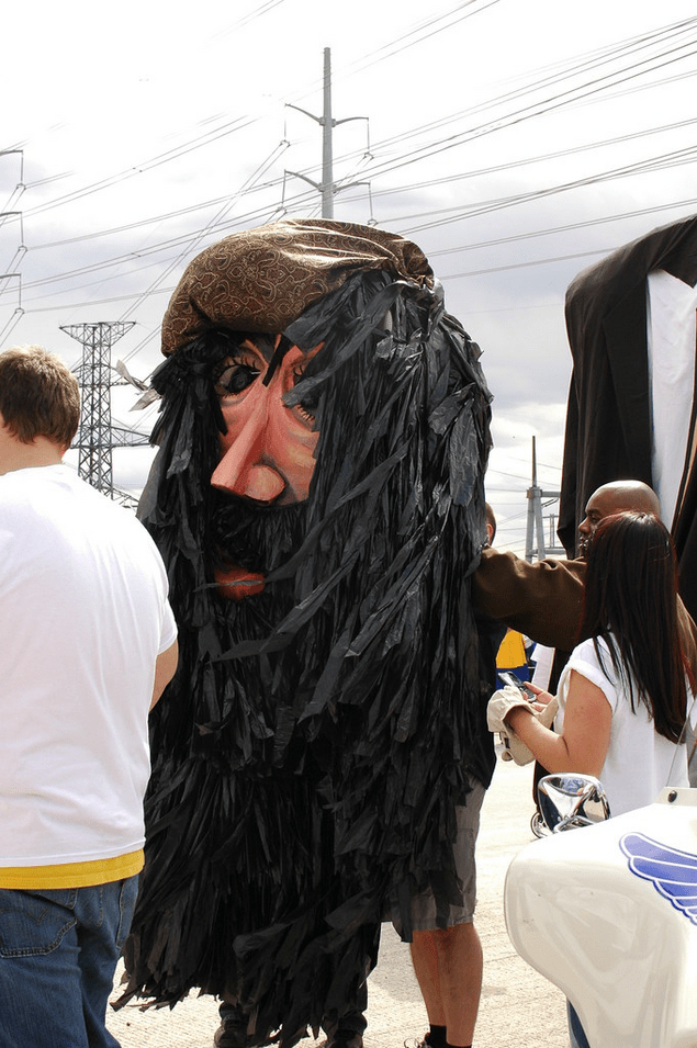 Due to the strong winds and the weight of his beard, Julien’s neck snapped before reaching the bridge. He stayed behind and found himself at the back of the parade line for last-minute repairs.