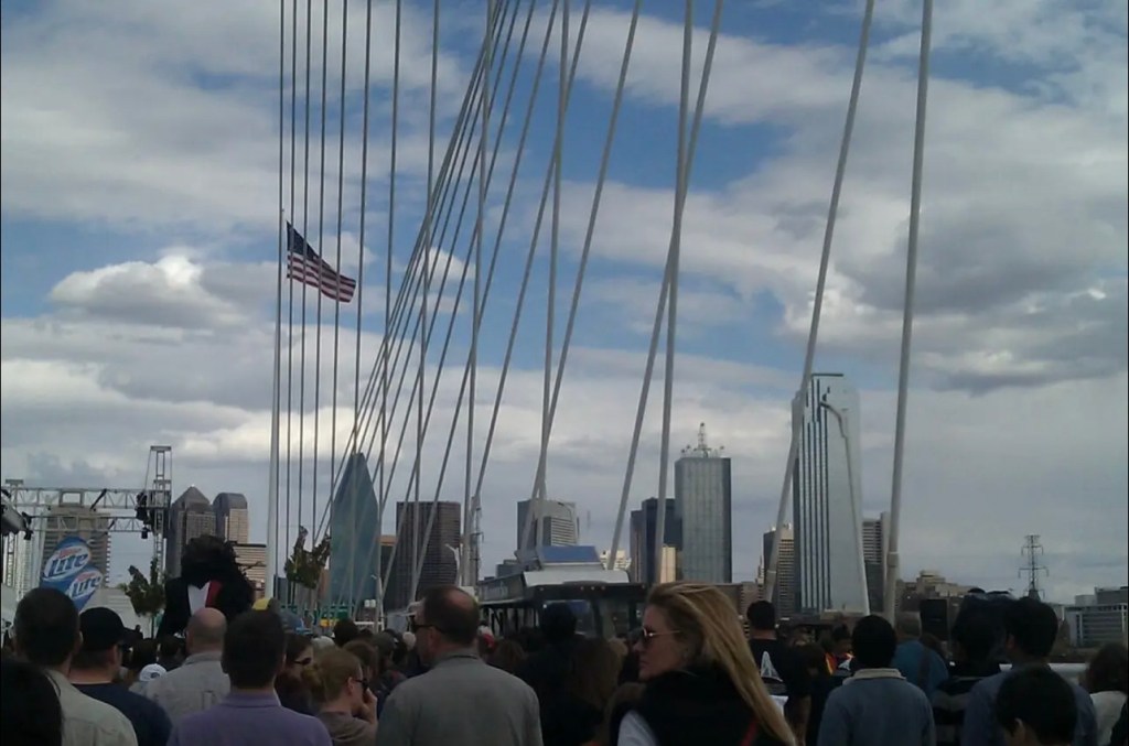Julien was spotted in another video taken further up the bridge, better revealing the initial damage and quick repairs done by the Friends of Reverchon Park. Here, he is the last in line and the last Giant to make it to the end of the bridge.